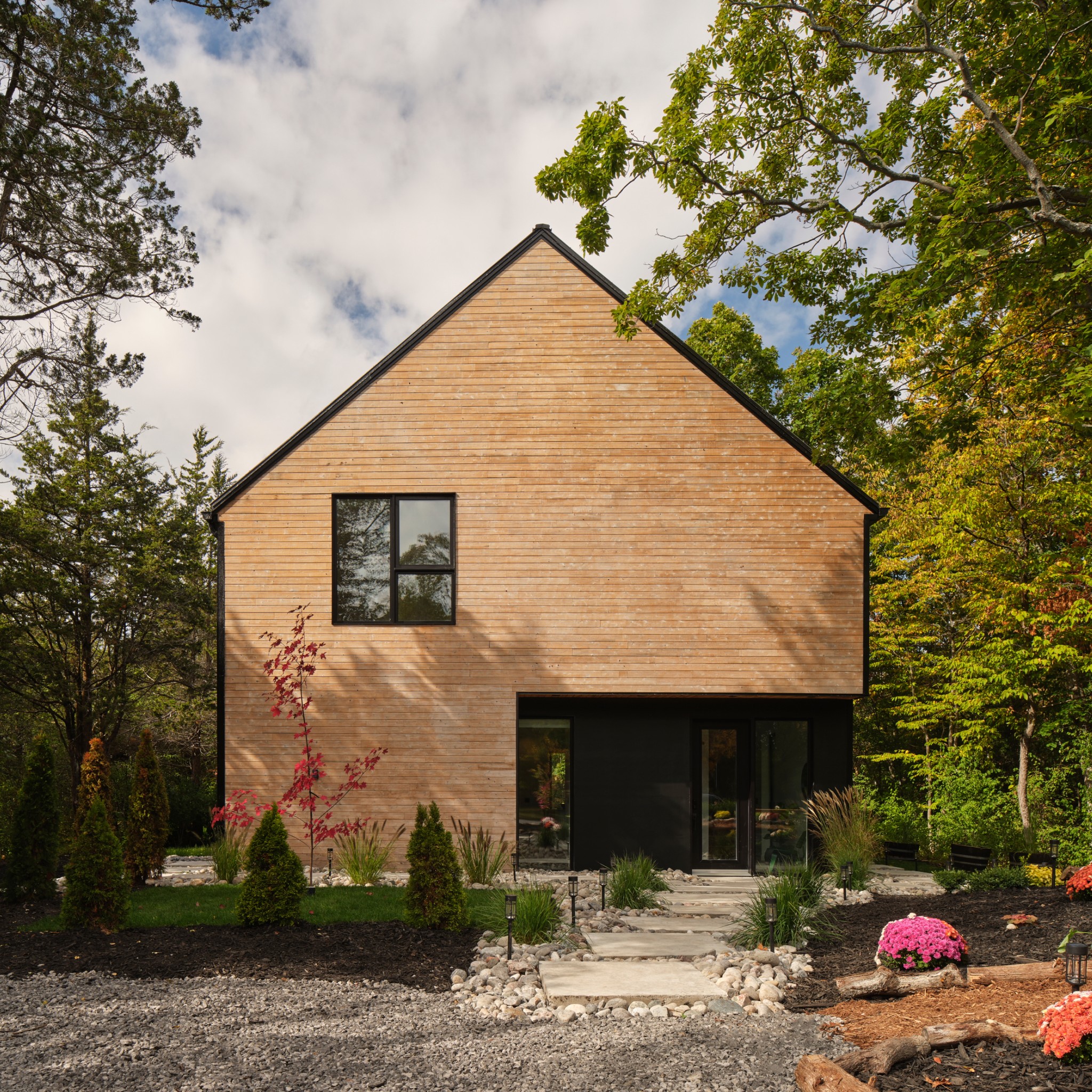 The airy, 2,000 sq. ft., 2-storey home features 3 bedrooms, 2 bathrooms, and a contemporary design that takes cues from its surroundings. Take a look at the floor plan for all details.