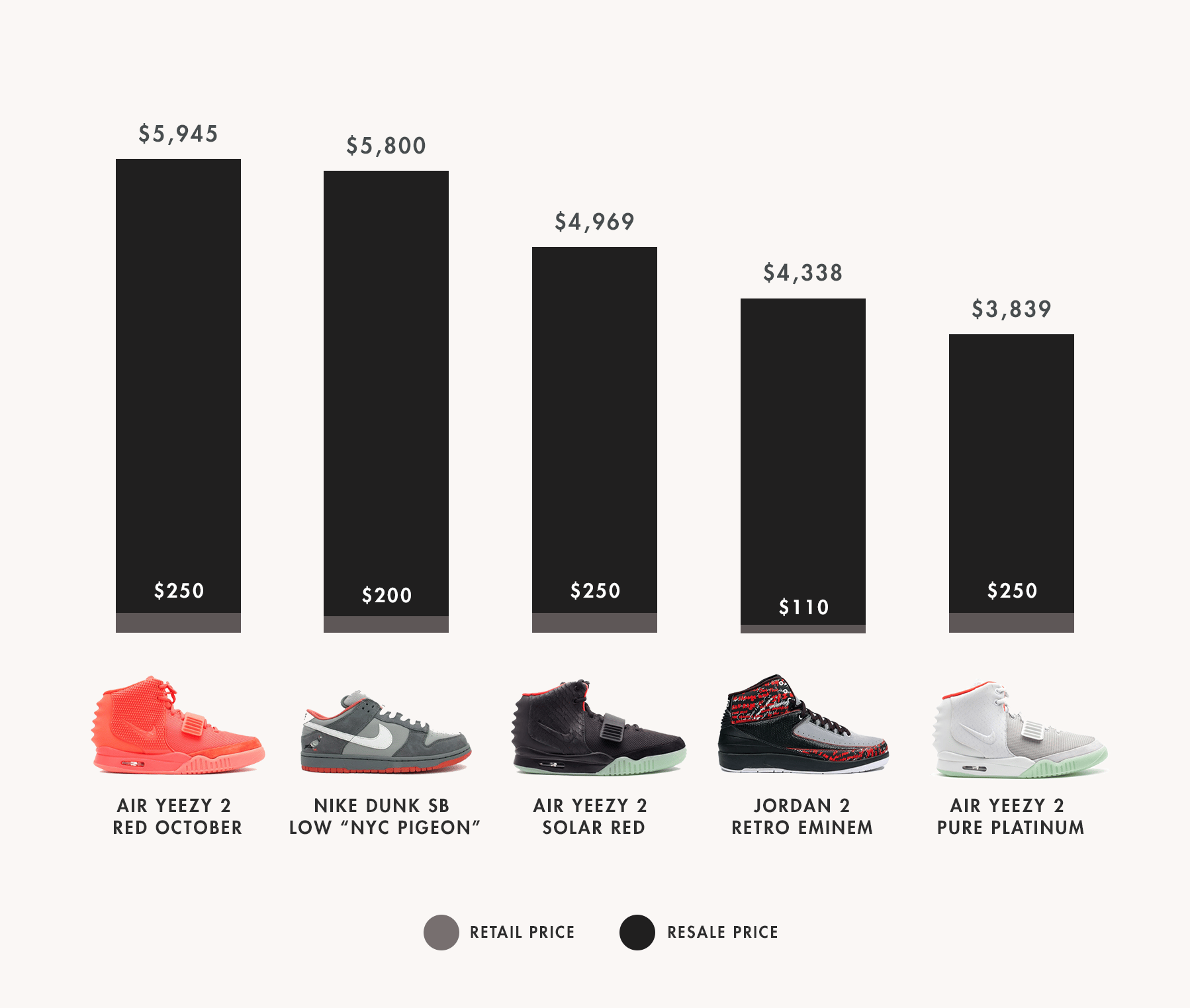 If you don’t know anything about how freaking expensive sneakers can be, or that you can make money buying and selling them, you should check out the most-expensive list on StockX (the sneaker industry tracking site). Or just look at this list of the site’s five best investments in recent years—assuming you were able to get your hands on an unused pair at the retail price: