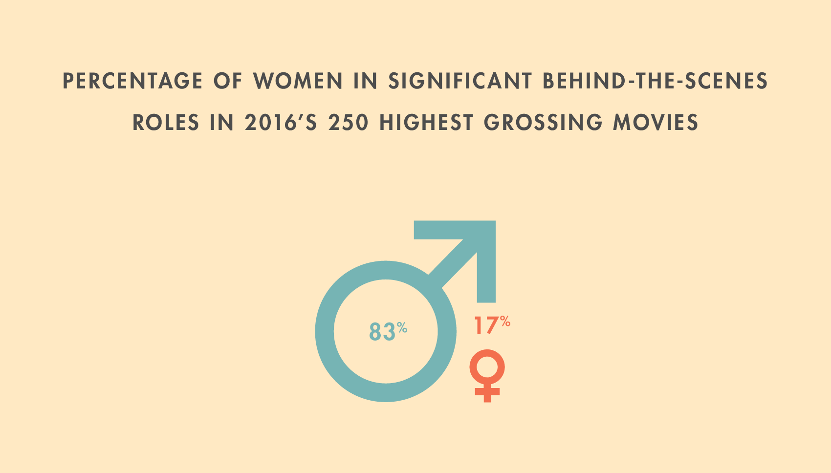 Women were best represented among producers: Of the top 250 films, 24% were produced by women. “Best” is relative: Only 5% of cinematographers were women. More than one third of the films in the report had one woman or fewer in behind-the-scenes roles. Film composers were the most male-heavy group: This year 3% of the top 250 films had female composers, and Anne Dudley was the last woman to win an Oscar for best original score (in 1997, for The Full Monty).