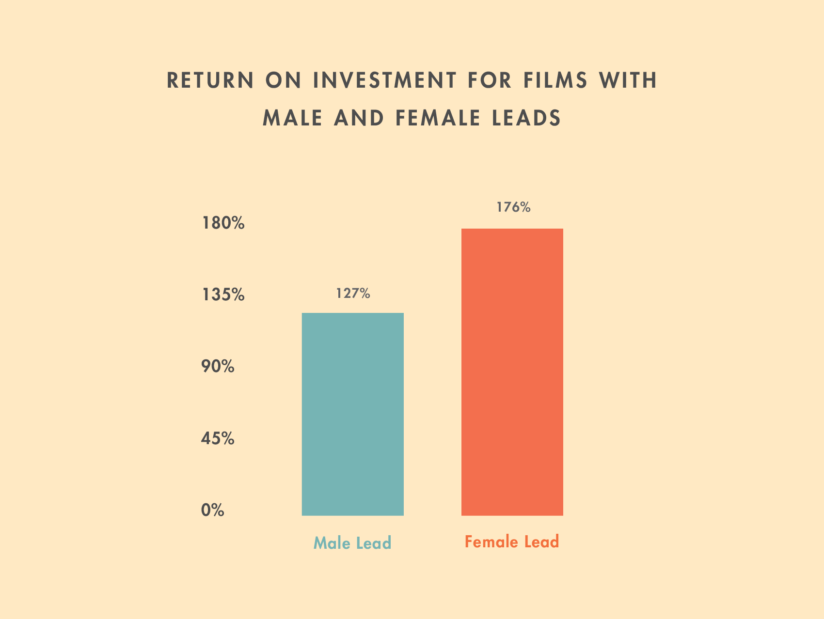 We were also interested in how films with female leads did proportionally. Lots of big-budget movies with stuff that blows up star men, but did smaller-budget movies starring women earn a greater percentage of their budgets? We discovered that men give a 127% median return on investment, and women give a 176% median return on investment. Which means: Put your money on McCarthy.
