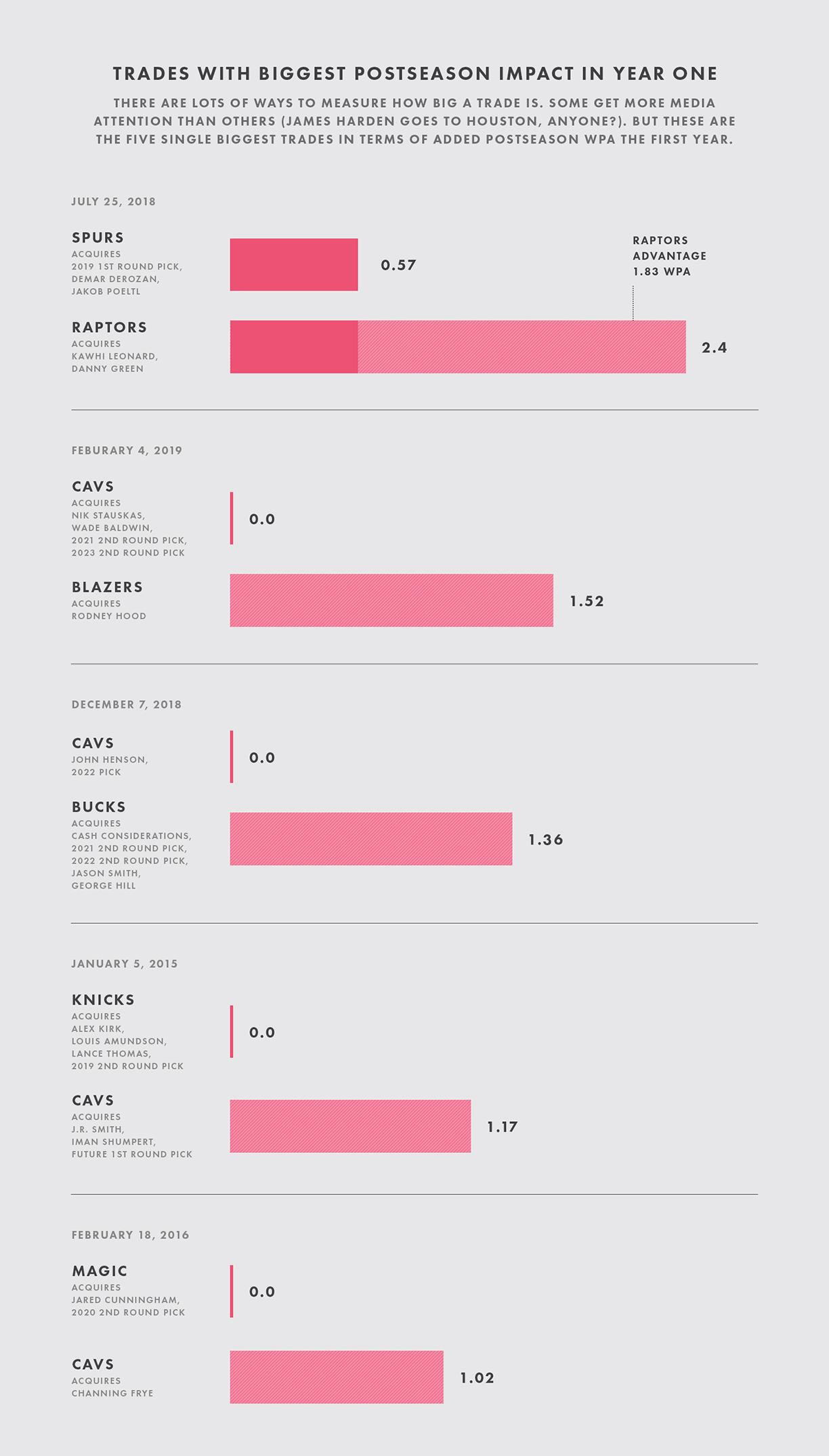 Leonard’s postseason success in 2019 is already the most impact a traded player has had since 2013.