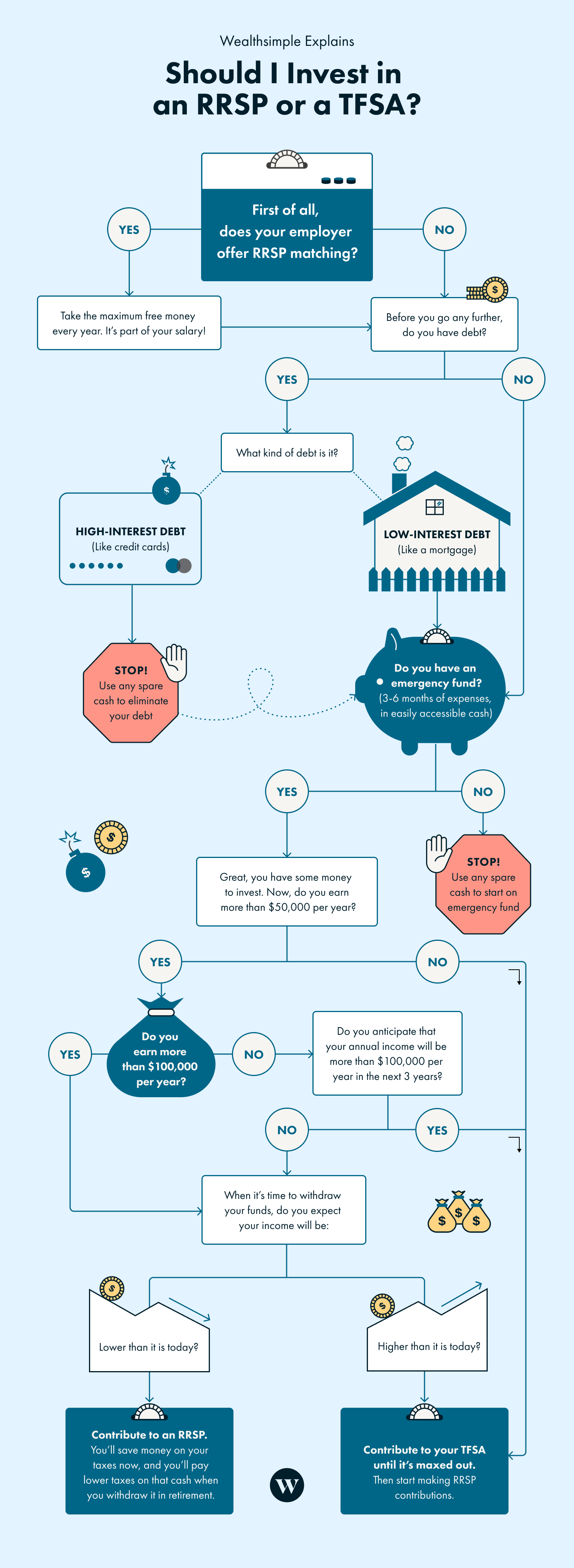 Life is good at putting humans at crossroads and forcing them to make tough decisions. Like: should I stream this one show that starts great but doesn’t pay off, or this other show that starts great but doesn’t pay off? And which of these investment accounts should I be using given my particular age and tax situation? You know, fun “would you rather” bar conversations. As far as that second question goes, if you’re wondering if you should be contributing to an RRSP or a TFSA this year, we can definitely help with that. (Not to complicate things, but if you’re considering buying your first home, an FHSA can also be worth adding to the mix. We’ve got an article — and a flowchart! — to help you with that decision, too.)