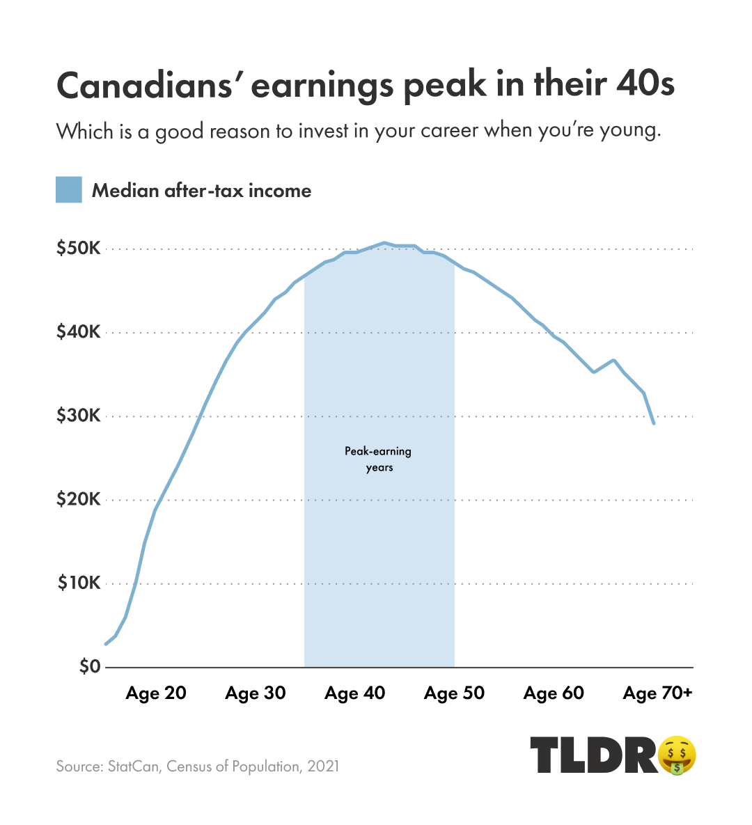 Perhaps the biggest hitch with children is all the extra space they need to grow; hence, middle-aged Canadians spend more annually on housing — $31,600 — than any other group.