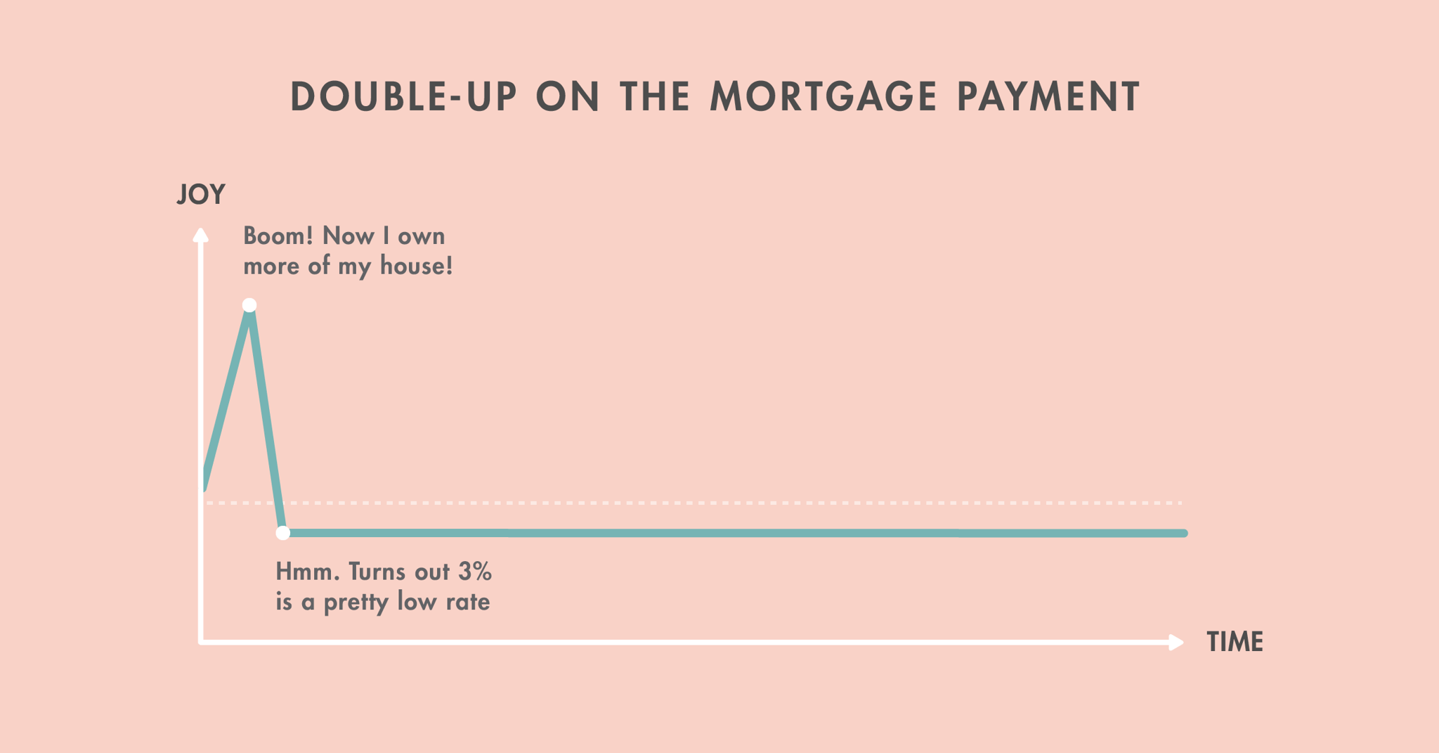 Sounds great, right? Gets you one month closer to paying off that house. And you get that little spike of joy when you make the payment. But a lot of mortgage rates are historically quite low. If you have, say, a 3% interest rate, you stand to make a better return on your money by investing it in the markets — 6%, historically, if you put it in a diversified, low-cost, optimized portfolio (you know, like the ones we’ve designed at Wealthsimple).