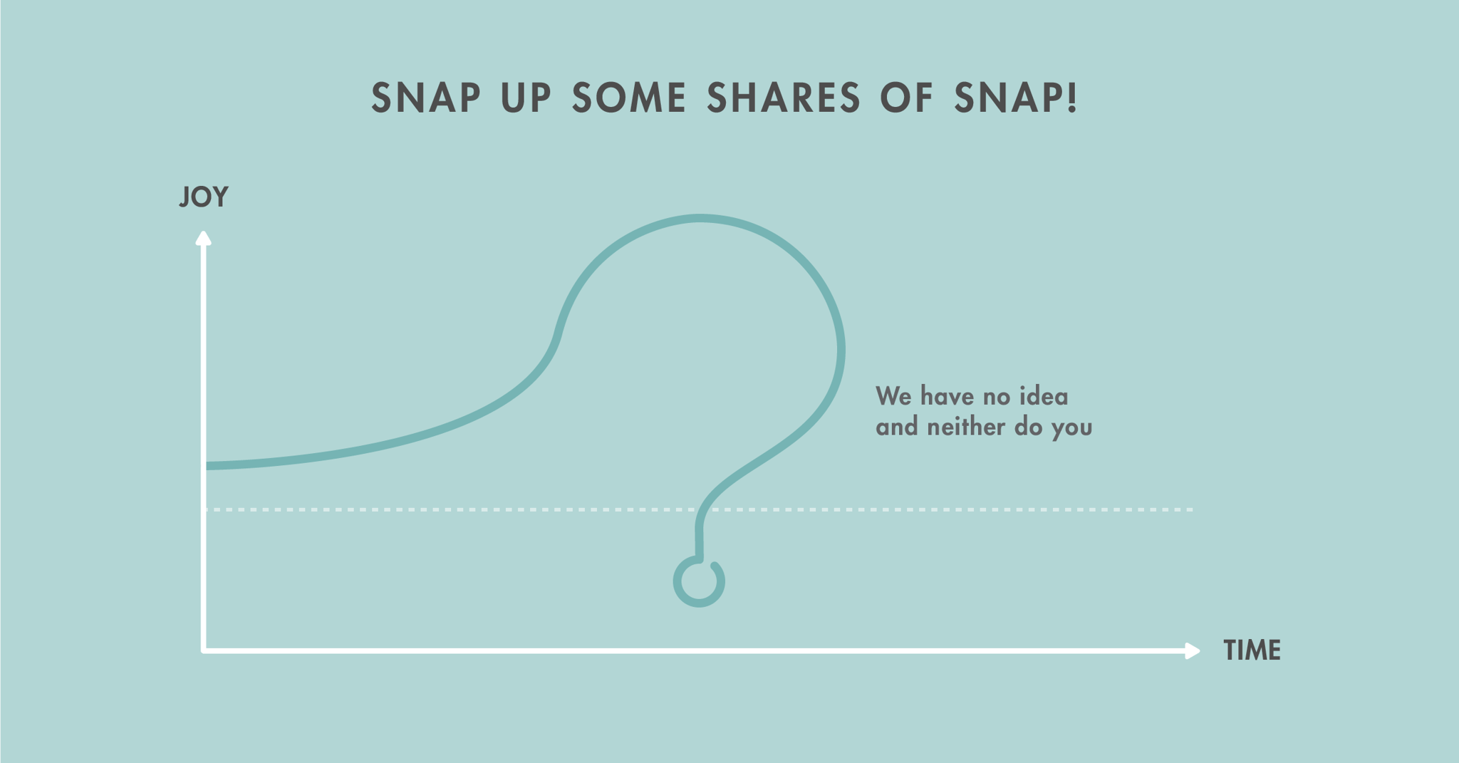 Who knows the future of Snapchat's parent company? You could feel like a genius, you could feel like an idiot. Like picking any stock you'll probably feel like a genius then an idiot then a genius for a while, and then maybe massively regretful over time.(Note the answer to that crucial “Who knows the future” of an IPO question is: no one. Not even the founders of Snap.)