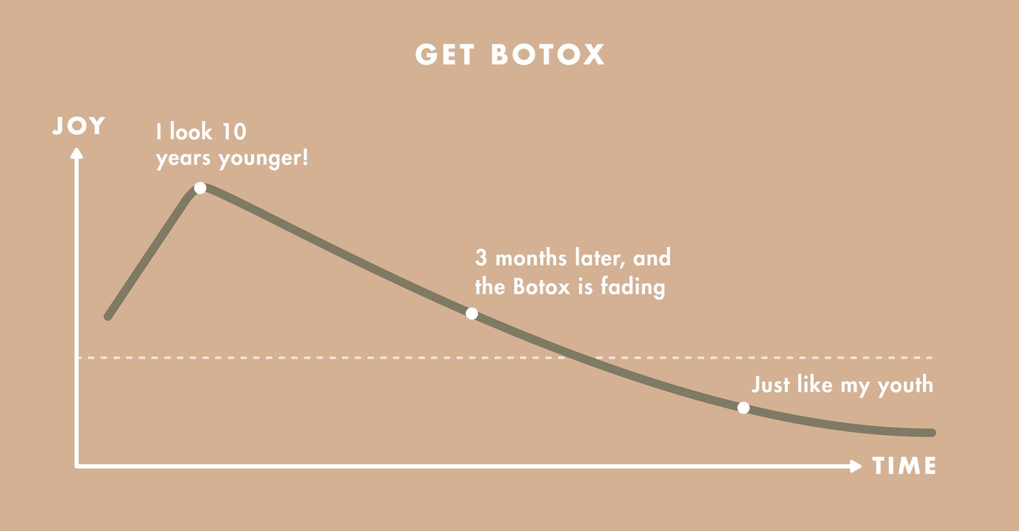 We do not judge at Wealthsimple. Happiness is happiness (unless it comes at the expense of another human). But we do happen to be data-driven. And we want to ask you: is youth-by-injection a good long-term investment? Is the fountain of (laugh-line) youth worthwhile if it's really just a way to get you on the hook for a few hundred bucks every few months?