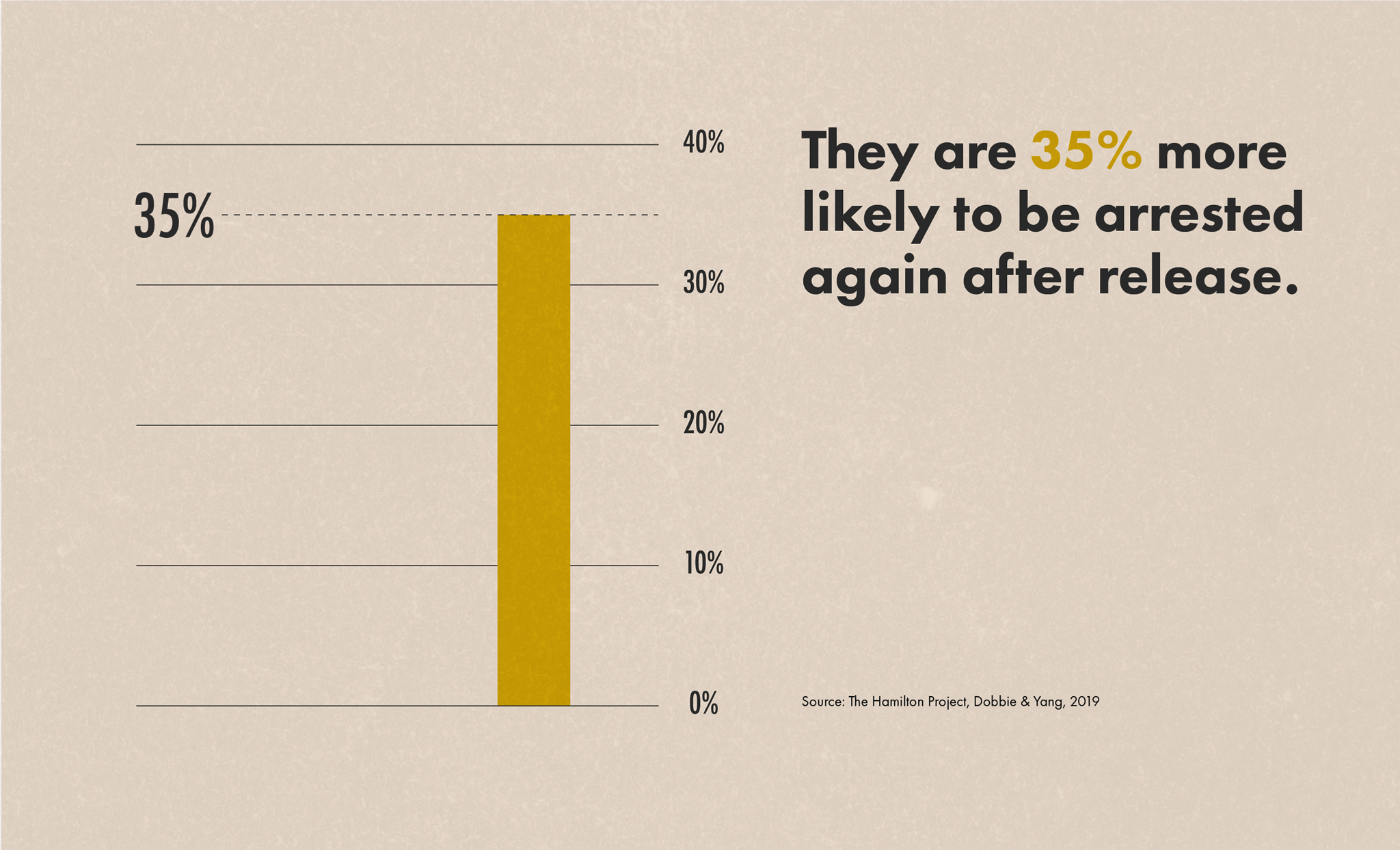 And what you began to see was once you remove that coercive lever of bail and the ability to force somebody into a plea bargain, systems will actually respond by trying to be more creative about what justice might look like, what just sentencing could look like. The system stopped relying on what I call the dumb blunt instrument of jail, which was the default as a sentence when you are in a jail cell.