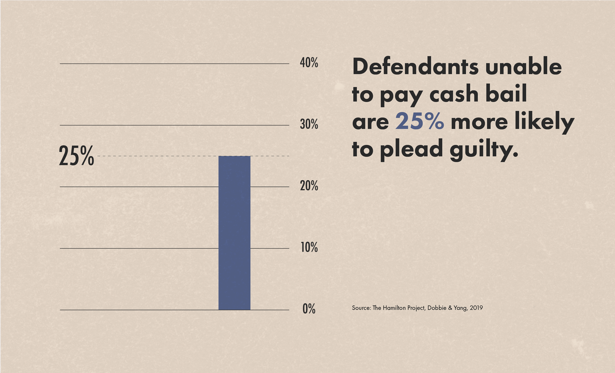 Steinberg: It's important to remember that if you're in this situation and you're from a low-income family, you are making decisions about whether to feed your kids, pay your rent, or pay a bail bondsman to get you out and get you back home. It really puts people in an untenable position. And what winds up happening is that the overwhelming majority of people just plead guilty to go home. The judges and prosecutors will make them an offer, and they go, "OK, whether I did the crime or didn't do the crime, at least I'll get home to the safety of my family and I can kiss my kids goodnight."