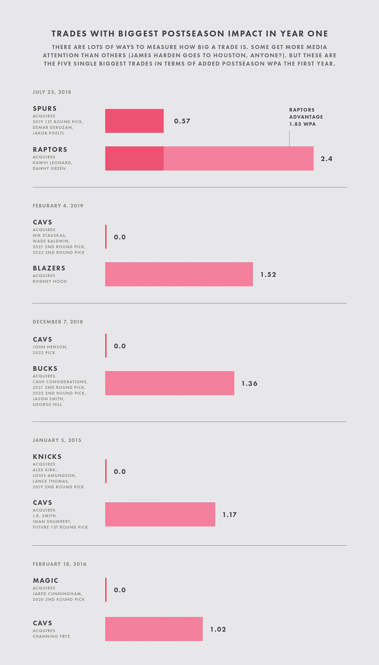 Leonard’s postseason success in 2019 is already the most impact a traded player has had since 2013.