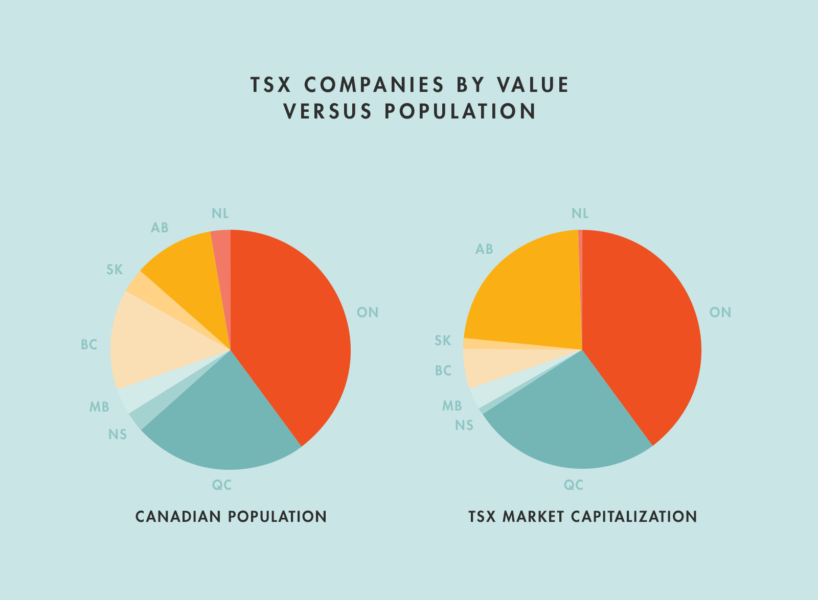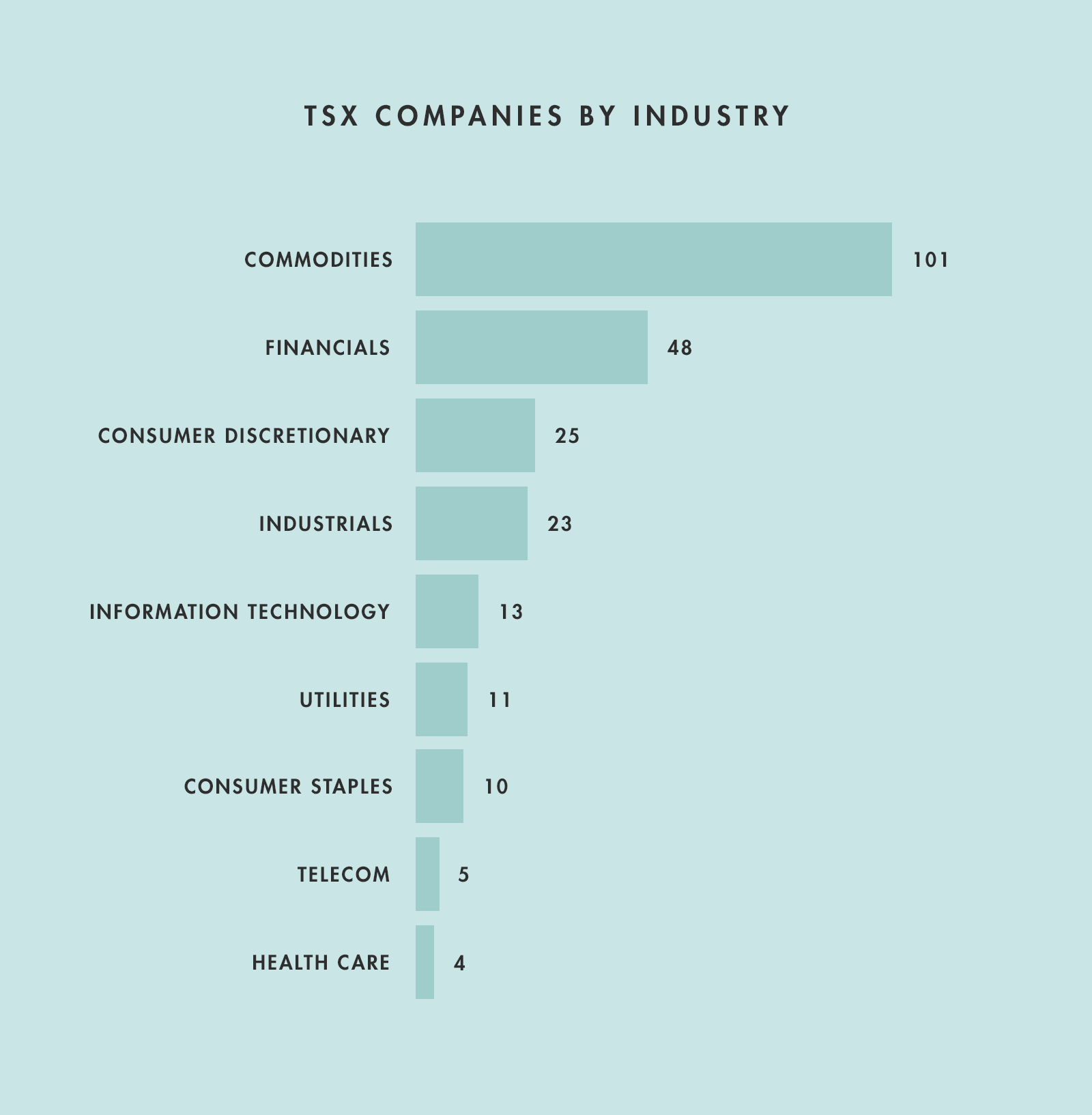 We love geeking out on numbers at Wealthsimple. One of the numbers people ask me about a lot is the TSX Composite Index. When people talk about “how the stock market is doing” in Canada, they often talk about the TSX Index. But to most people, it’s just an abstract number. The most basic thing to understand about that number is that it represents the stock prices of the largest 240 companies (measured by market capitalization) that are traded on the Toronto Stock Exchange. When that number goes up, people say the stock market is doing well. When that number goes down, they say it isn’t. But if you go inside the numbers, the Index is also a kind of snapshot of the country. If you understand the companies that make up the TSX, you’ll not only better understand what you’re investing in (among the most common exchange-traded funds track the TSX Index); you’ll understand the economy and business culture of Canada.
