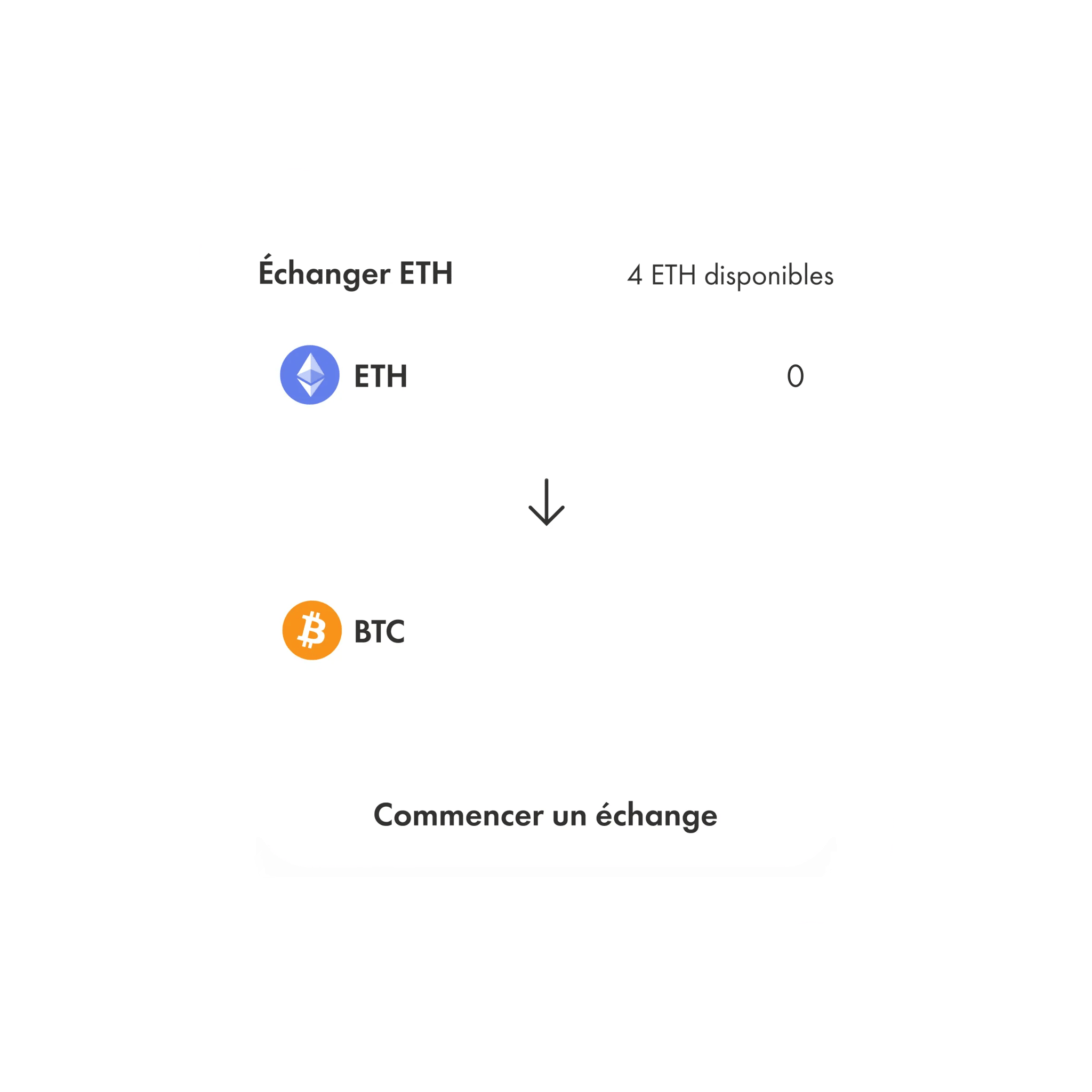 Les échanges de cryptomonnaies vous permettent de convertir directement une pièce admissible en une autre, sans d'abord la convertir en espèces. Ce faisant, vous ne payez qu'une seule fois les frais de transaction. Pour en savoir plus, consultez cet article du Centre d'aide.